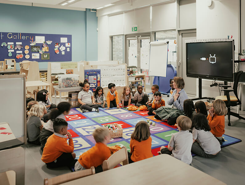 The school offers students a variety of learning experiences and includes a range of spaces, such as a ‘Makerspace’ dedicated to arts, crafts, and technology; ‘Oracy Stairs’ on each floor, which offer informal seating and teaching space; and a flexible studio that has been designed for dance, sport, and performances. The school also boasts a dedicated room to cater to students with special educational needs (SEN).